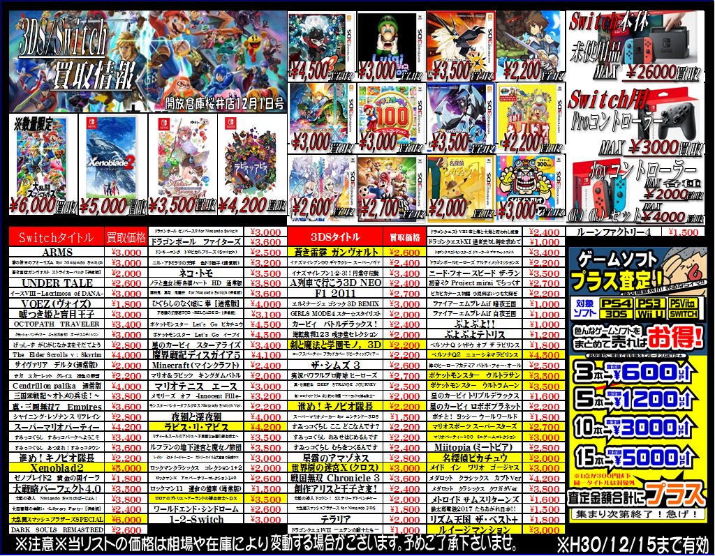 開放倉庫桜井店 على تويتر 桜井店より 買取チラシ更新のお知らせです Switch専用ソフト 大乱闘スマッシュブラザーズspecial をはじめ 12月発売タイトルを高価買取中 また3dsソフト ペルソナq2ニューシネマラビリンス や ルイ ジマンション 世界樹の