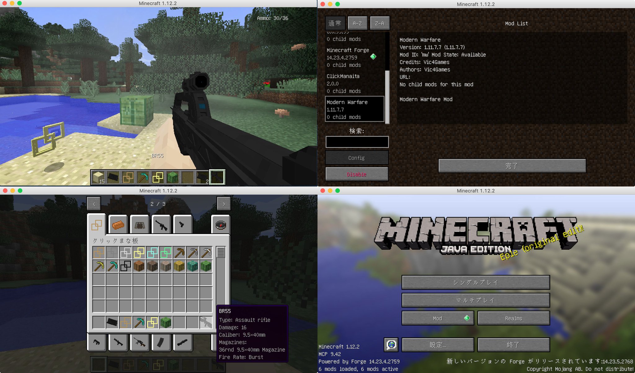 Ni Lab On Twitter Minecraft Java Edition に Vic S Modern Warfare Mod という銃 Mod なるものを導入 Forge 1 12 2 の最新版ではクラッシュしたので Java Jar Forge 1 12 2 14 23 4 2759 Installer Jar と古いバージョンを入れて動かす Https T Co Vohvkz0mkz