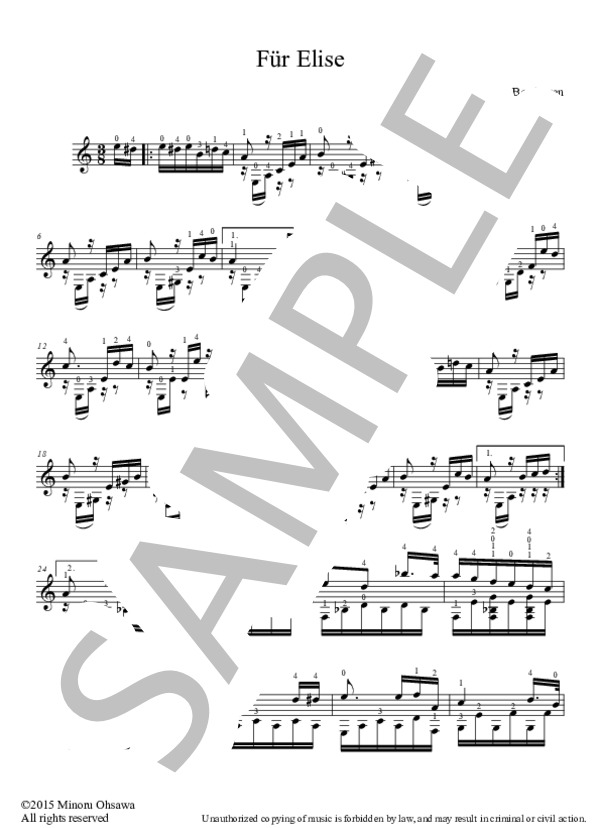 楽譜 エリーゼのために Tab ルートヴィヒ ヴァン ベートーヴェン ギターソロ 初 中級 Piascore 楽譜ストア