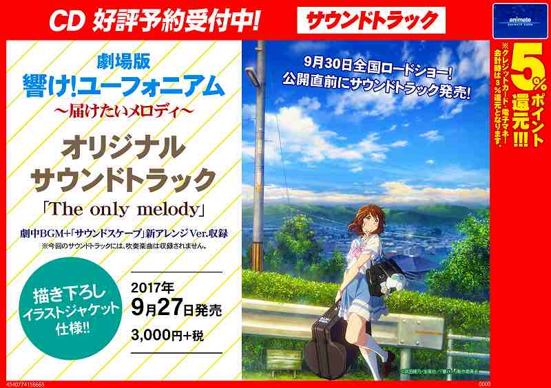アニメイト通販店舗受取り商品情報 On Twitter Cd予約情報 9 27発売予定 劇場版 響け ユーフォニアム 届けたいメロディ オリジナルサウンドトラック The Only Melody 予約受付中 かんたん便利な Web予約 Https T Co Wywc5sr7s3 Https T Co